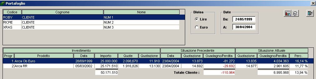 Gestione Fondi permette all’utente di visualizzare in maniera molto semplice la Situazione Economica del Cliente.