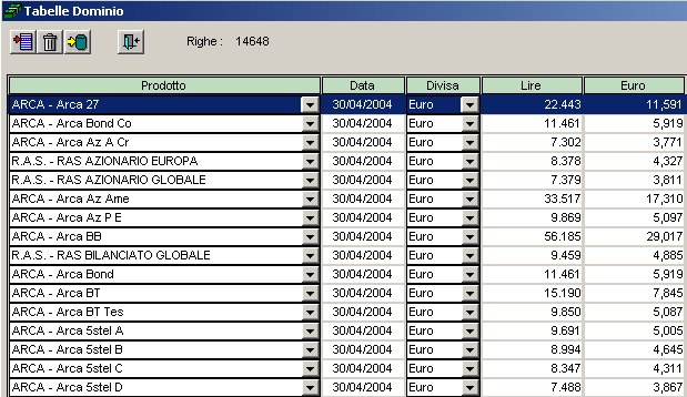 Gestione Fondi consente di creare, modificare e cancellare i dati delle seguenti tabelle di base accessibili da qualsiasi