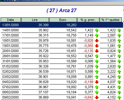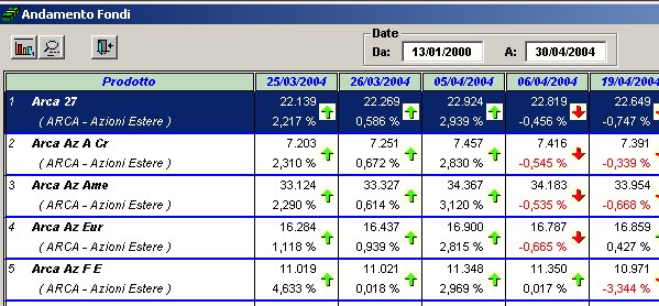 Gestione Fondi permette di visualizzare per ogni Società Prodotto un Grafico con le ultime 10 Quotazioni con un